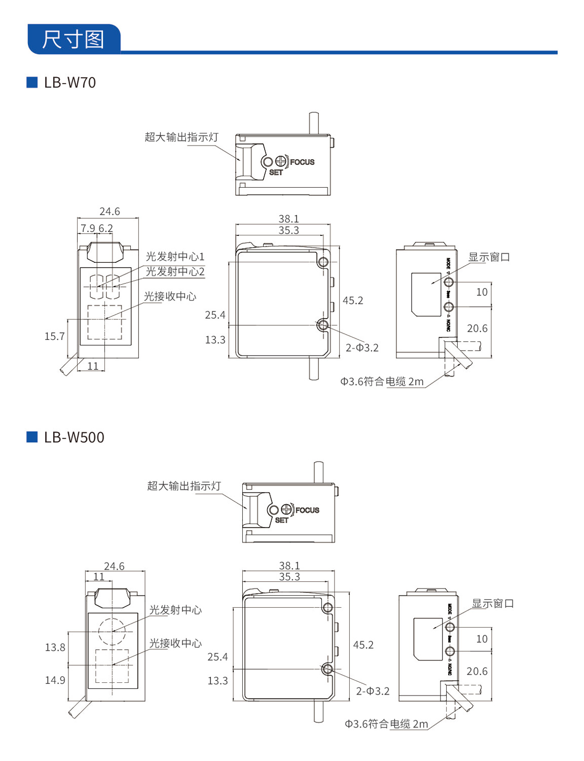 白色LED光源长距离色标传感器 LB-W70/500系列